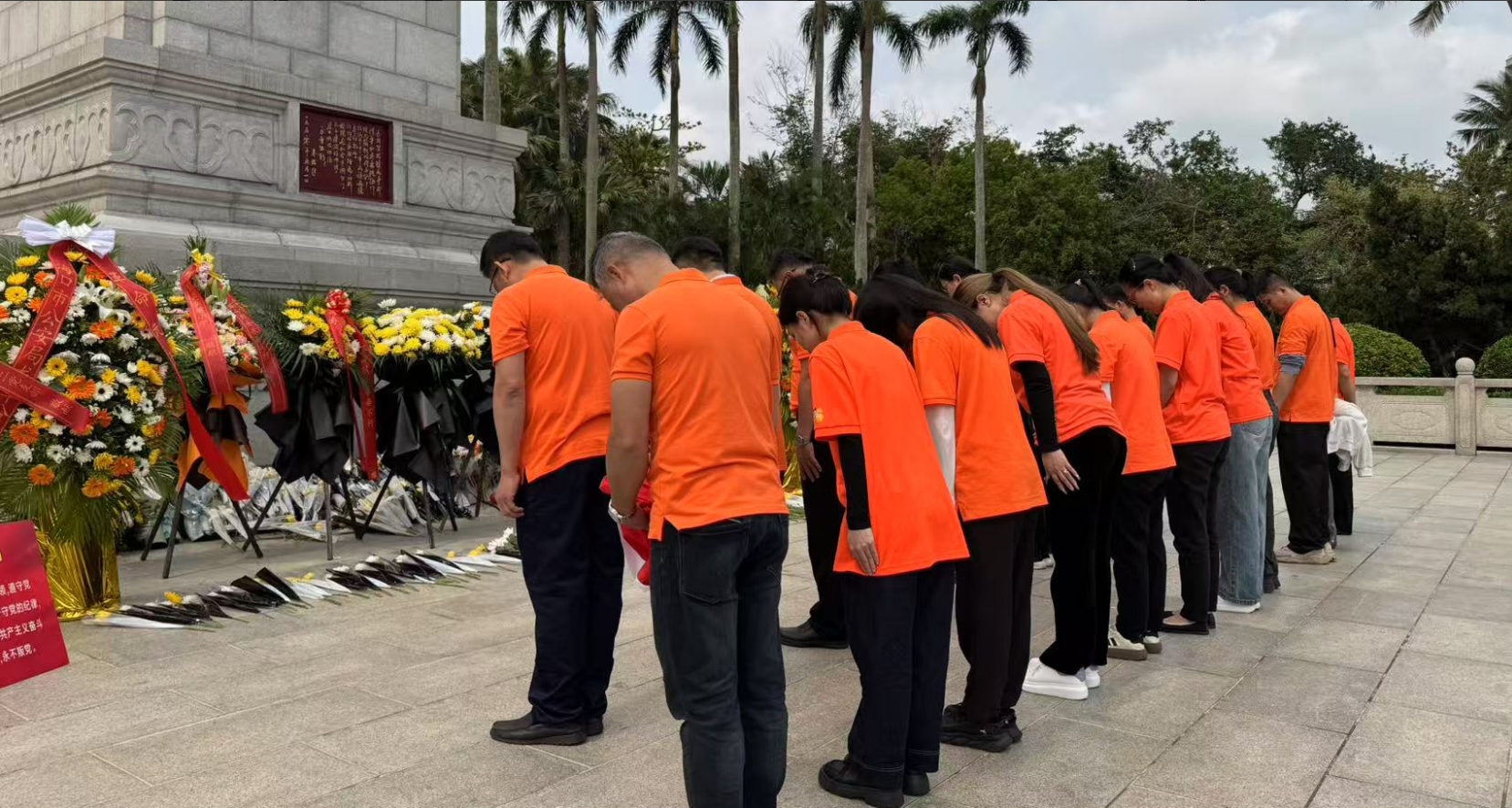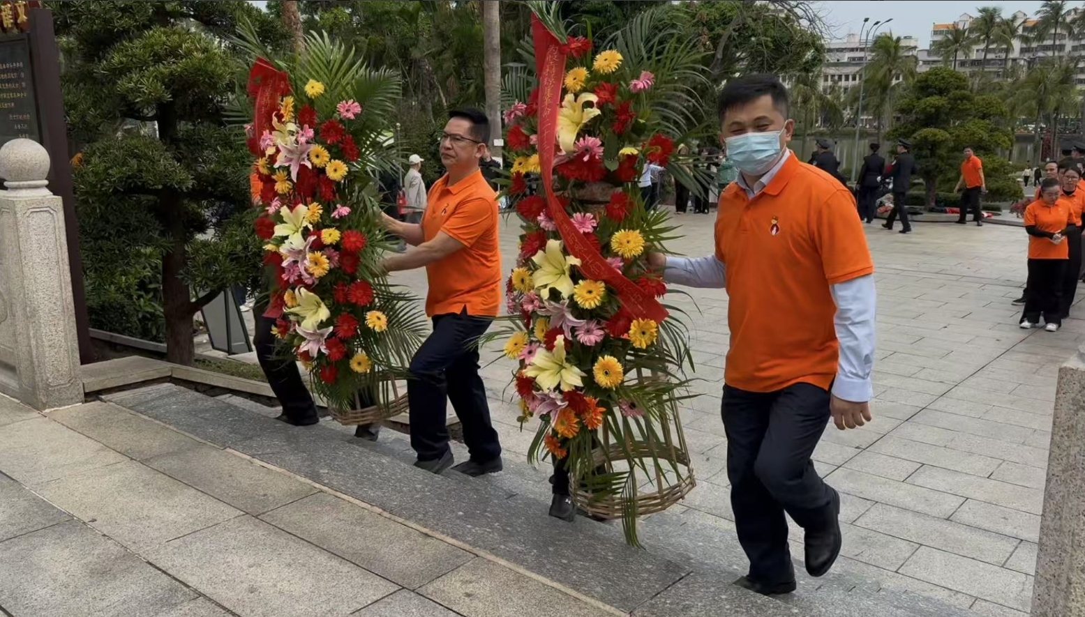 经过一段时间的等待才轮到EBpay。EBpay首先向烈士敬献花篮,花篮缎带上写着“为坚持琼崖革命23年红旗不倒牺牲的烈士们永垂不朽!”“为解放海南岛渡海牺牲的烈士们永垂不朽!”鲜艳的花篮寄托EBpay对革命先辈的崇敬和哀思。